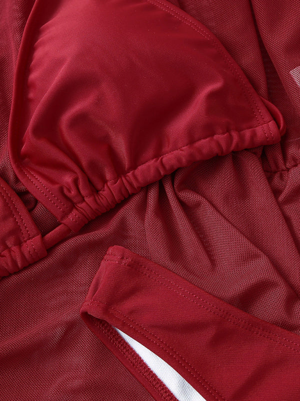 Women's Solid Color Sexy Lace Up High Waist Bikini Three-Piece Set